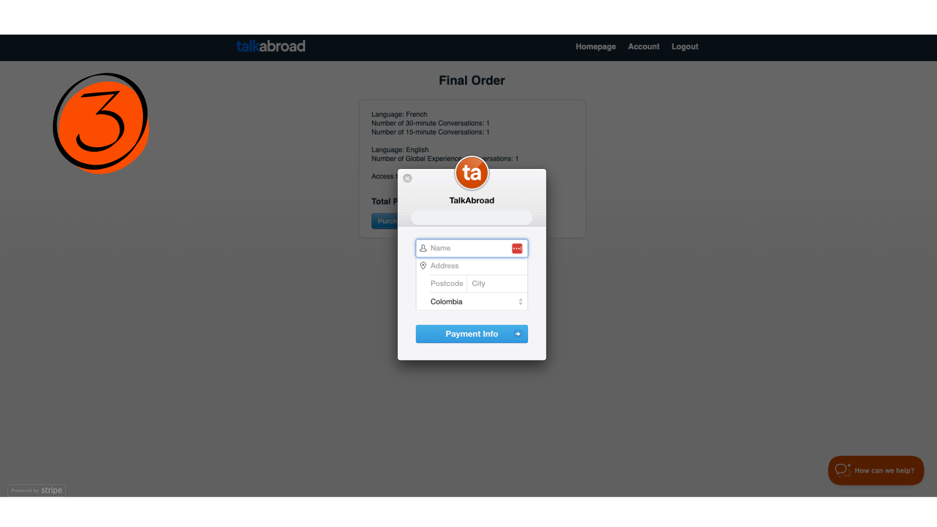 In order to pay via credit card you need to select the language, number and length of credits to purchase, and confirm payment by entering the following information: